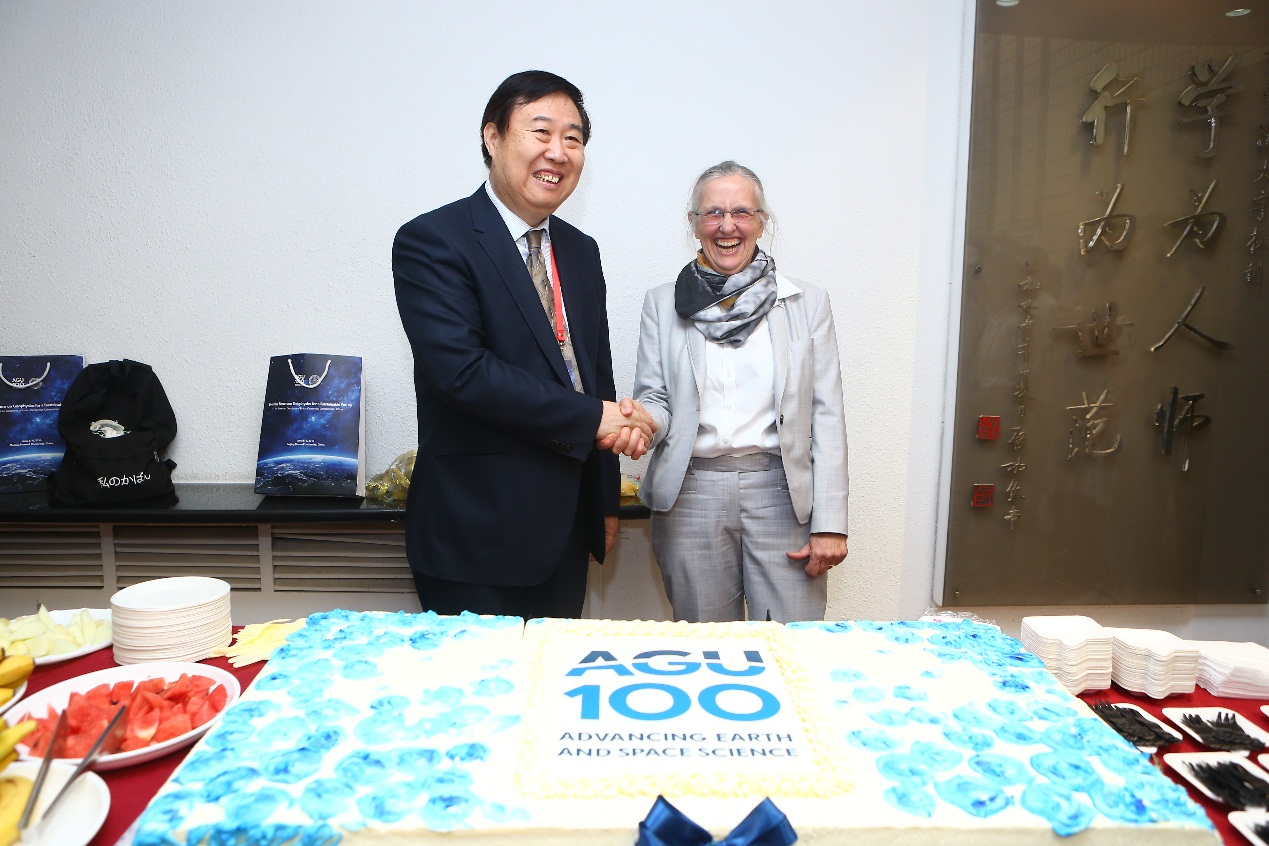中美双方代表分发AGU 100年庆典蛋糕,将气氛推向高潮