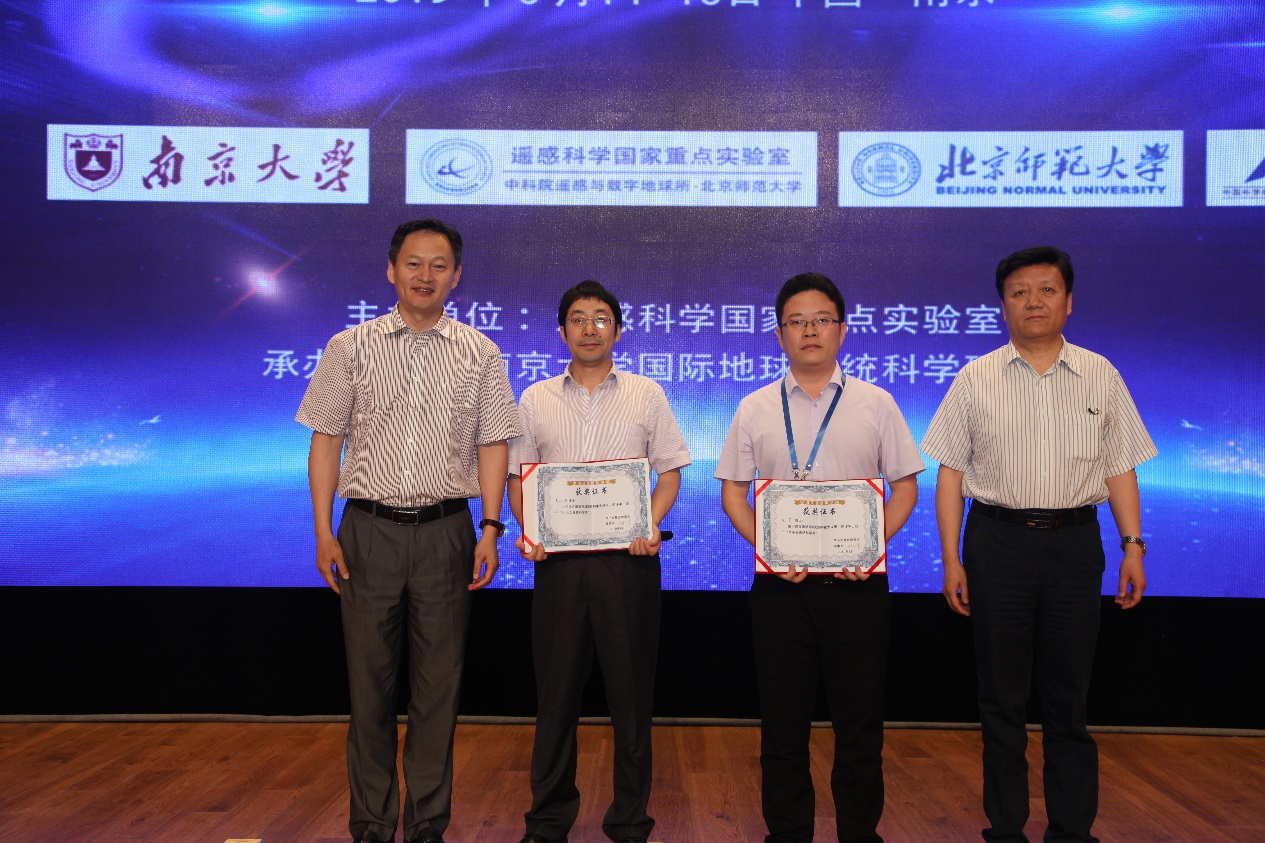 陈镜明教授和清华大学宫鹏教授为李小文遥感科学青年奖获奖者颁奖