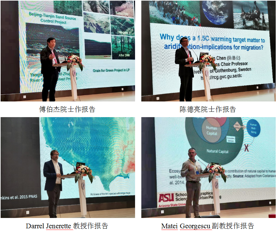 7月13日,本次论坛开幕,论坛联合主席邬建国教授和青海师范大学副校长许存宁教授分别致辞。随后,来自美国加州大学河滨分校的Darrel Jenerette教授、瑞典哥德堡大学的陈德亮院士、中国科学院生态环境研究中心的傅伯杰院士、美国亚利桑那州立大学的Matei Georgescu副教授、美国佛罗里达大学的仇江啸博士和美国亚利桑那州立大学的廖川博士分别作了学术报告。报告的题目依次为:“Enhancing landscape resilience at the urban, agricultural, and natural lands nexus(增强城市、农业和自然土地之间的景观弹性)”;“Why does 1.5℃ warming goal matter to aridification and migration?(为什么1.5℃温升目标对干旱化和迁移很重要?)”;“Coupling Human-Earth Systems for Sustainability(可持续框架中的人地系统耦合)”;“Sustainable Urban Systems – An Agri-Climatic Perspective(可持续城市系统——基于农业-气候的视角)”;“Consequences of above- and belowground drivers on ecosystem services across scales(地上和地下驱动因素对生态系统服务的跨尺度影响)”;“Sustainable intensification of agriculture for synergistic socio-economic and environmental outcomes(可持续集约化农业——社会经济与环境的协同效应)”。