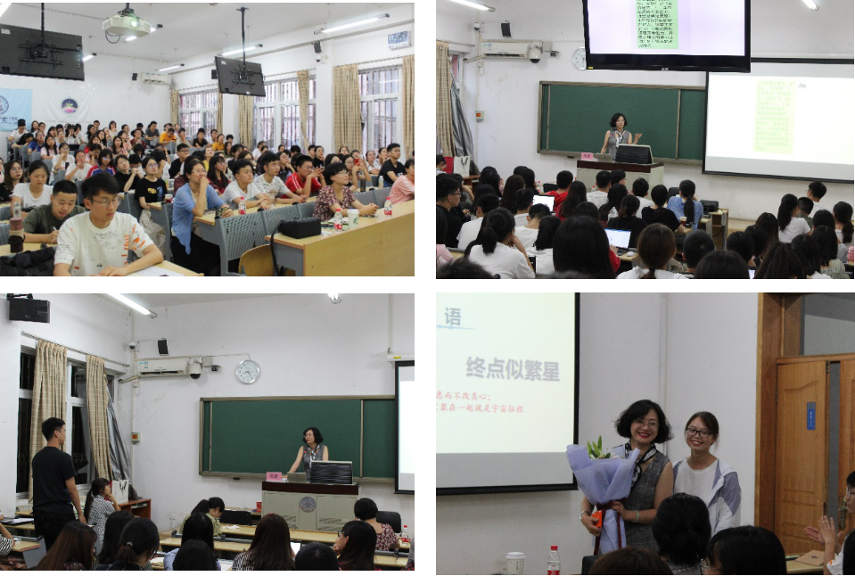 三个小时的讲座,大家听得意犹未尽,高老师以独特的个人魅力和诙谐幽默的语言风格赢得了大家欢声笑语和热烈掌声。最后,园丁俱乐部社长徐焕向高老师献花,祝高青老师和各位老师节日快乐,工作顺利,也祝愿同学们学有所思、学有所获、学以致用。