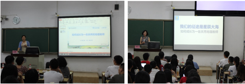为庆祝第35个教师节暨习近平总书记发表“四有”好老师重要讲话五周年,引导师范生牢固树立以“四有好老师”为榜样的人生目标,教导新老生做好职业生涯规划、提高教师职业素养,2019年9月6日晚18:00,地理学部邀请深圳市南山区地理调研员、老司机论坛 原地理系校友高青老师作了“如何成长为一名优秀的地理老师”主题讲座,学部党委副书记王颖、辅导员石月婵及宋青伟参加了活动,百余名新老本科生和研究生汇聚一堂在生四教室认真地听取了报告。本次活动由地理学部园丁俱乐部主办、李颖同学主持。