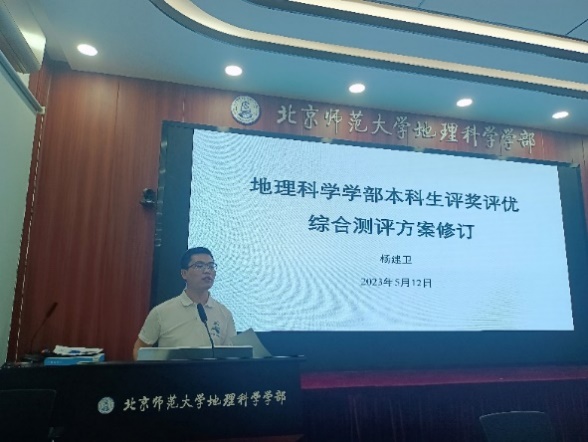 随后,负责评奖评优工作的杨建卫老师介绍奖学金评选方案的修订工作。杨老师介绍了奖学金评选方案修订原则和流程着重讲解了奖学金评选方案的修订内容与依据,便于班级代表了解修订之处,进一步发表意见和提出建议。本科生教务苗琼月老师介绍了保研方案修订版,重点讲解了保研细则修订部分与修订前的对比,使得同学们对保研细则有了一定了解和把握
