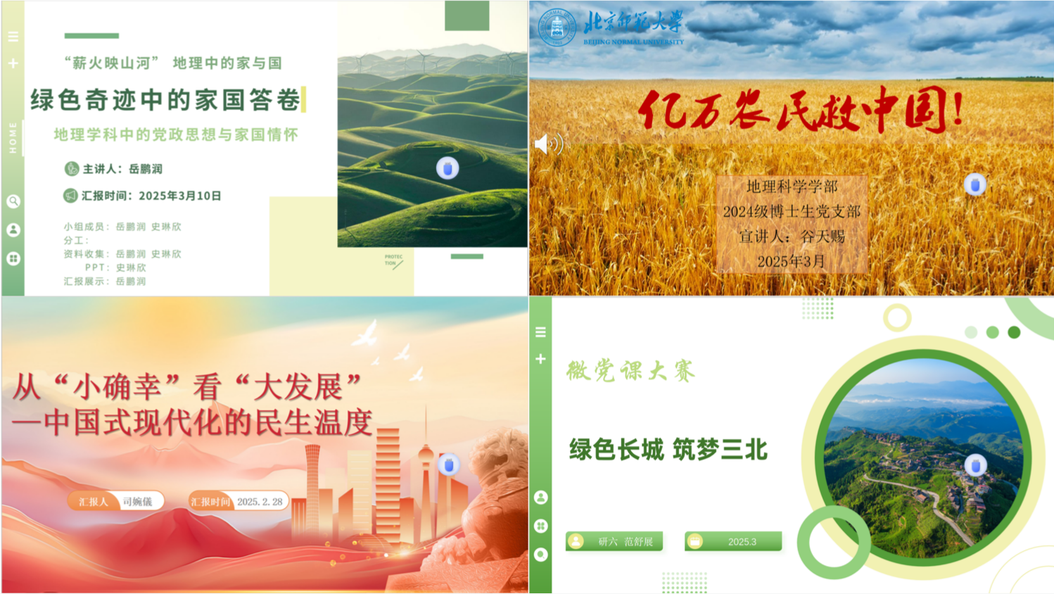 比赛伊始,主持人李则仕详细介绍了比赛流程与评分规则,并致开幕词。本次大赛共有来自各支部的22名选手参加。学部党委副书记陈蓉蓉、党团学工办公室主任石月婵、党团学工办公室赵敏和王元慧四位老师,以及老司机论坛 第九届微党课大赛优胜选手王子晴和周慧馨两位同学受邀担任评委。参赛选手们依照抽签顺序依次展示。他们围绕革命精神、时代精神、绿色发展等主题,使用PPT、视频等多种素材,用微党课的方式,生动展现了党的光辉历程——从深入学习党的二十大理论的深刻领悟到全面贯彻党的二十届三中全会精神的坚定步伐,从雄安新区的蓝图绘就到京津冀协同发展的壮阔实践,从地理空间中的家国情怀到生态文明建设的绿色篇章,选手们以生动的案例,展现了新时代中国发展的蓬勃生机。选手们以富有感染力的语言和真挚的情感,将党的理论与时代脉搏精髓娓娓道来,深深打动了在场的听众。