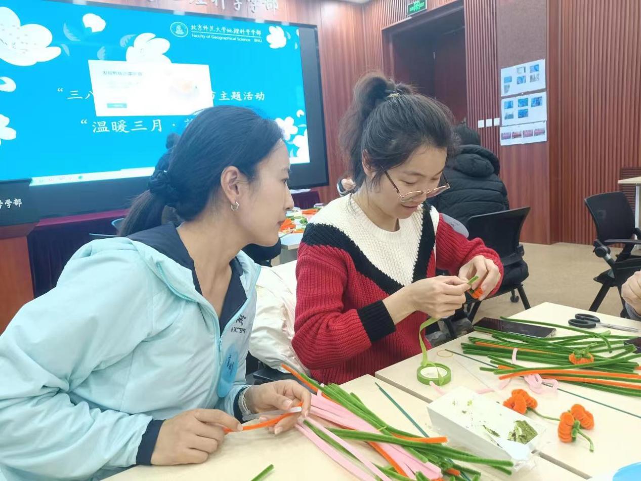 为庆祝“三八”国际劳动妇女节,加深学部教师凝聚力,增进教职工相互了解,2024年3月7日上午,学部工会在生地楼180会议室举办了 “温暖三月·花样巾帼”花艺制作活动。