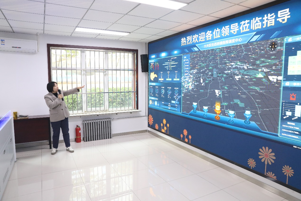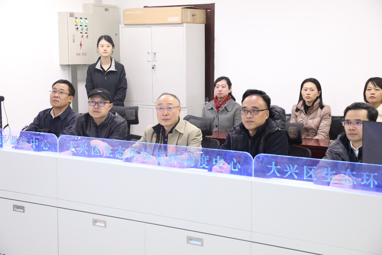 我校一行人先在王坡局长的带领下参观了大兴区智慧生态建设项目(一期)——生态环境指挥调度中心。该项目平台包括生态环境综合展示平台、大气精细化管理决策平台、水环境综合管理平台、土壤综合管理平台、污染源协同管理平台等十个子系统的建设,旨在提升大兴区生态环境科学决策能力,全面加强物联网、大数据、人工智能和云计算等先进技术手段在生态环境管理领域的应用,构建“技术领先,实用优先”的全要素生态环境和污染源智慧管控体系,实现生态环境监管精细化、综合决策科学化,为区生态环境管理科学决策提供了技术支撑。