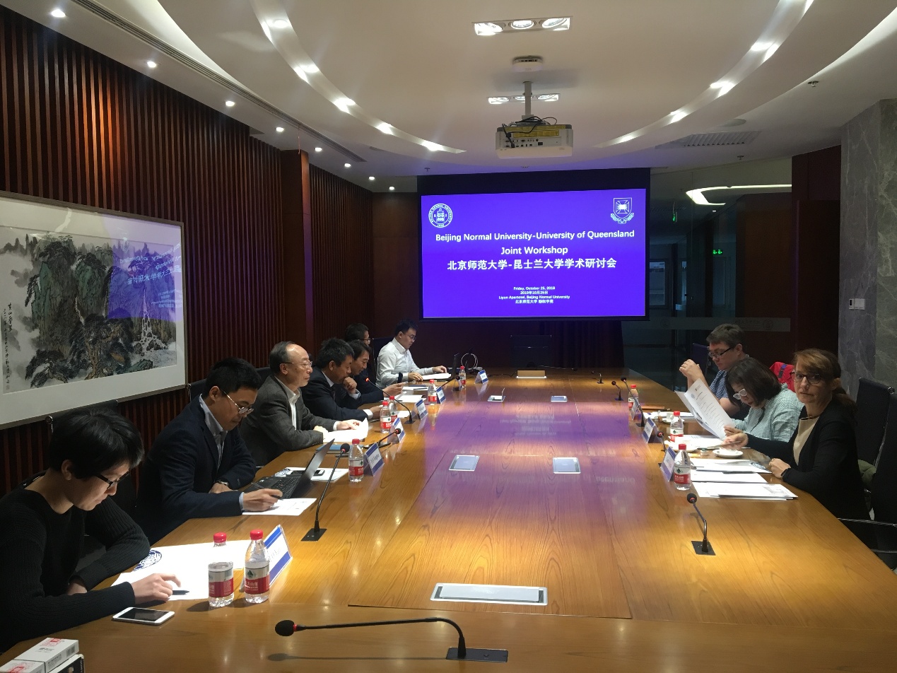 下午,双方联合学术研讨会于学部222会议室举行,学部宋长青部长、武建军副部长以及周涛副部长参加,会议由武建军副部长主持,除澳方代表外,我方地理学院潘峰华副教授,自然资源学院李小雁教授、杨晓帆教授,陆地表层系统科学与可持续发展研究院缪驰远教授,地理数据与应用分析中心沈石老师(代程昌秀教授)、地表国重实验室郭彦副教授出席。双方就各自近期的科研进展及成果进行了交流,共作了8个学术报告,外方还在会上提出建立“城市科学”虚拟实验室的设想,希望未来推进双方教师的科研交流和合作。