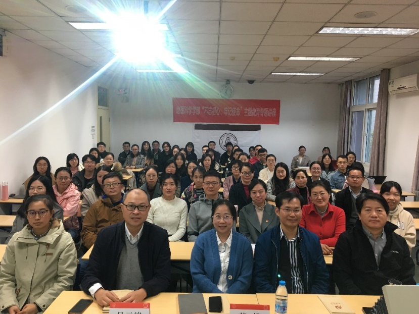 本次讲座的主题为“共产党人的初心和使命”,沈老师深入浅出、旁征博引,强调了初心和使命的重要性。他分层剖析了“初心”和“使命”的内涵,介绍了共产党人的初心与使命是为人民谋幸福、为民族谋复兴、为人类谋进步。人民幸福目前主要是指中国人民的幸福,也日益指世界人民的幸福;民族复兴是终极使命的中间环节,它是中国人民幸福的保障,也是为人类做贡献的基础;促进人类进步是当前的现实选择,与实现共产主义的最终目标相契合。中国共产党党员应该增强党员意识,坚定信仰,不忘初心,牢记使命,在促进人民幸福、民族复兴、人类进步中实现人生意义。沈老师的讲座将理论与生活实践、具体案例结合,兼具严肃与活泼,能够从时事中解读党的发展理念,以小见大、见微知著。