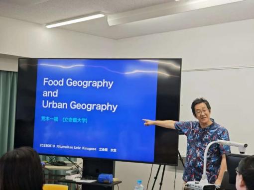 随后,寺床教授介绍了立命馆大学地理学系的发展历程与学术特色。作为日本历史悠久、规模较大的地理学研究机构,该系在地图学、城市地理、膳食地理、旅游地理、灾害防治与文化遗产保护等领域具有重要影响,尤其在防灾减灾与京都文化财产保护方面成果突出。