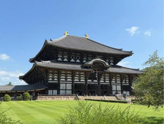 8月21日的实习聚焦于“文化遗产与灾害治理”。上午前往奈良,参观东大寺与唐招提寺等世界文化遗产,了解盛唐建筑对日本寺庙布局的深远影响,并感受历史宗教空间与当代市民生活的交织。在奈良公园,同学们观察了自然生态与人文景观的融合场景。