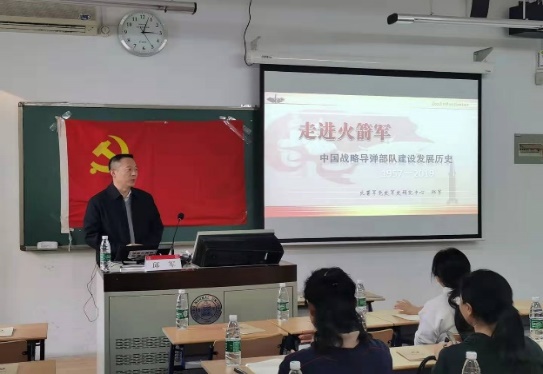 本次讲座主题为“火箭军发展历程”,邱主任以火箭军与北师大的关联为切入点,全面、详细地介绍了什么是火箭军和火箭军的前世今生。邱主任讲到,中国人民解放军火箭军是中国战略威慑的核心力量,是中国大国地位的战略支撑,是维护国家安全的重要基石。从火箭军成立之初的艰难,到如今成为一支能够有效保卫国家安全、维护世界和平的重要战略力量,邱主任深入浅出,结合历史资料、视频资料与军事演习案例,为我们讲述了鲜为人知的火箭军发展历程。邱主任指出,即使现在我们处于和平的时代,但火箭军所肩负的责任与使命依旧任重而道远。
