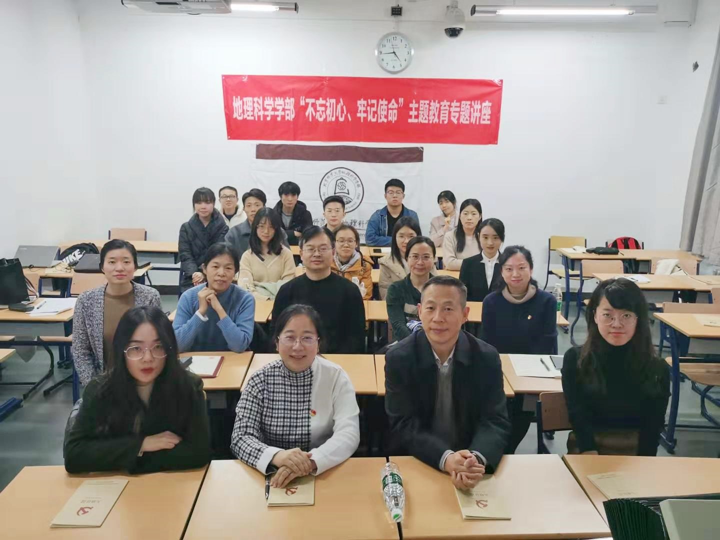中国人民解放军火箭军是中国大国地位的战略支撑,是维护国家安全的重要基石,火箭军的铁血精魂值得每一位师生学习。活动的最后,全体同志对邱老师精彩的演讲表示热烈感谢,师生合影留念。至此,地理学部“大地征途”二级党校已圆满举办三场“不忘初心、牢记使命”主题教育专题讲座,对学部师生党员骨干进行了理论、党性培训,同时作为学部处级领导班子的集中学习研讨,确保了主题教育学习的持续性、深入性、全面性。