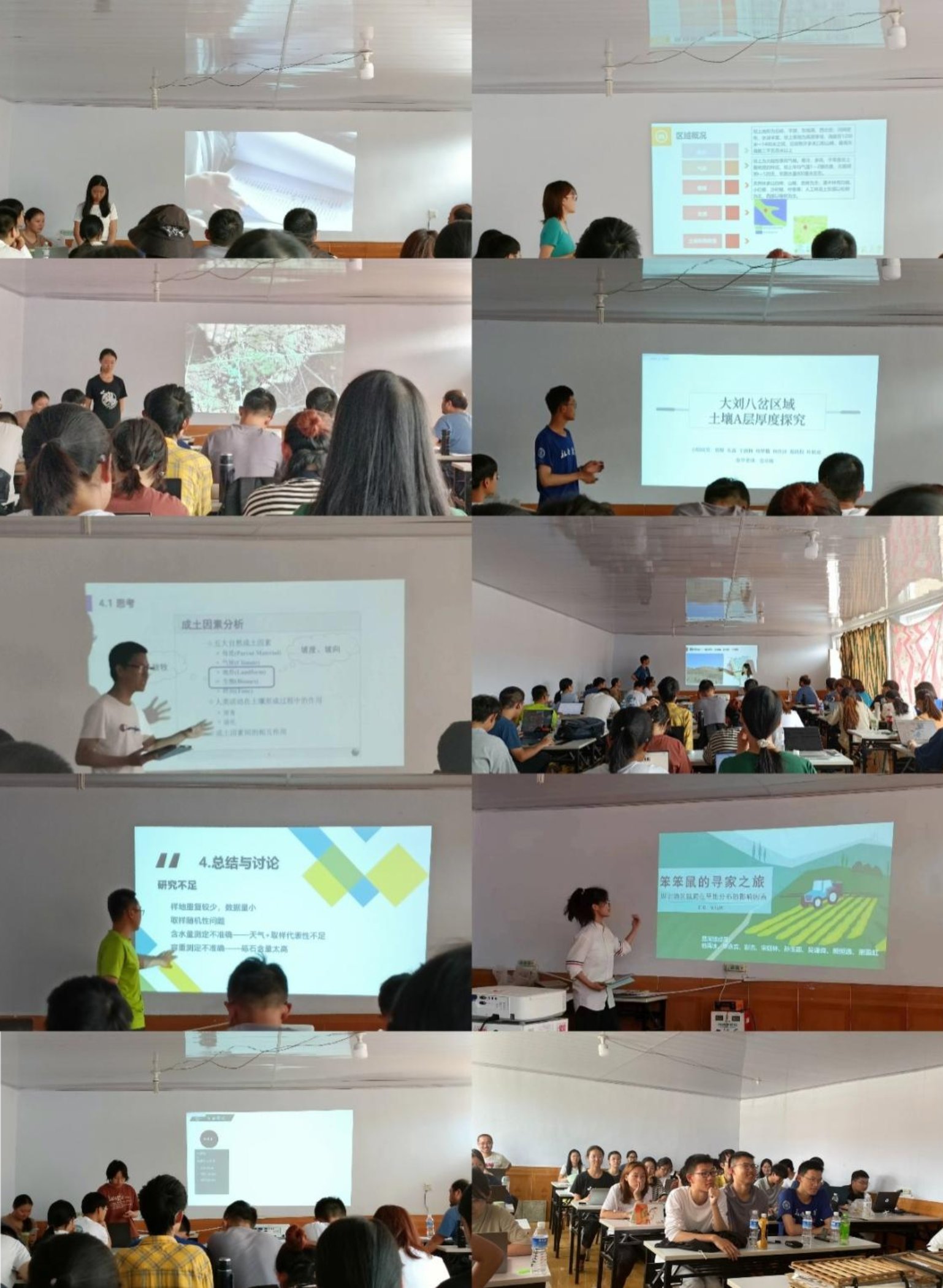 7月1日的实习成果汇报中,各组将自己的实习过程和实践成果进行了精彩的总结与阐述,汇报过程中的交流与互动也让同学们获得了新的认识。实习中有翻越山峰、有跨过河流,有暴晒、有冰雹,更有风雨无阻、披星戴月的同学们。实习期间天气多变,途中师生难免遇到“上午暴晒、下午下雨”的天气,师生并未停下脚步,保障了实习安全、高质完成。自主实习过程中,同学们基于前期实习成果提出自己感兴趣的课题,保持和老师们的密集沟通,野外实践、实验分析、交流学习的热情也在兴趣驱动下不断高涨。