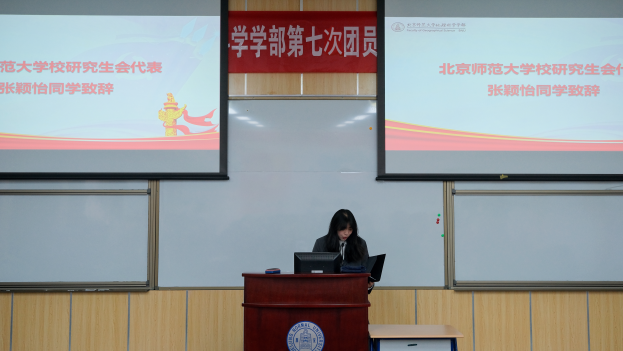 随后,校研究生会执行主席张颖怡同学致辞。张颖怡同学首先对出席现场的学生代表及工作人员表示感谢,对学部研究生会过去一学年来的工作给予了高度认可,并对即将产生的新一届研究生会成员致以美好的祝愿。