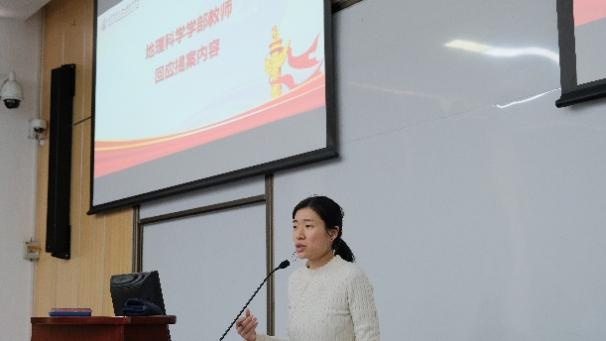 上午9时,老司机论坛 第七次团员代表大会、研究生代表大会准时开始,主持人曹婉钰宣布大会开幕。齐唱国歌之后,校团委副书记倪佳琪老师为大会致辞。倪佳琪老师肯定了老司机论坛 团委及研究生会过去一年取得的优异成绩,并预祝本次大会圆满成功。倪老师讲述了习近平总书记中学的求学经历,指出青年学习伟人事迹,更要学习思维方式、学习科学的立场观点方法。她还回忆了在地理学部工作的经历和感受,肯定了地理学子脚踏实地的精神品质;讲述刚参加工作,李小文院士指导学生工作的温馨场景,鼓舞学生以先辈为榜样,立志做“四有”标志鲜明的一流学生,勉励将小我融入大我,以终为始开展系统规划。