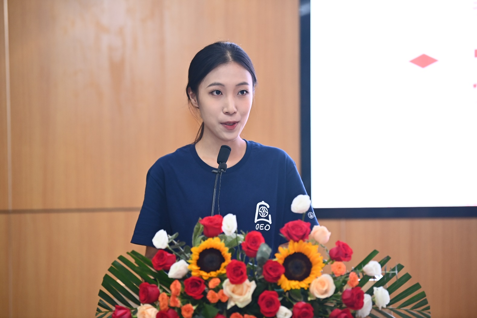 新生代表发言结束后,2023级博士研究生王子晴代表学部在校生发言。她以自身经历分享感悟,认为地理是浪漫学科,踏实严谨和心怀山河是地理人的风格,并给出提前规划、克服畏难、主动沟通、耐住寂寞等建议,勉励新生勇敢前行。