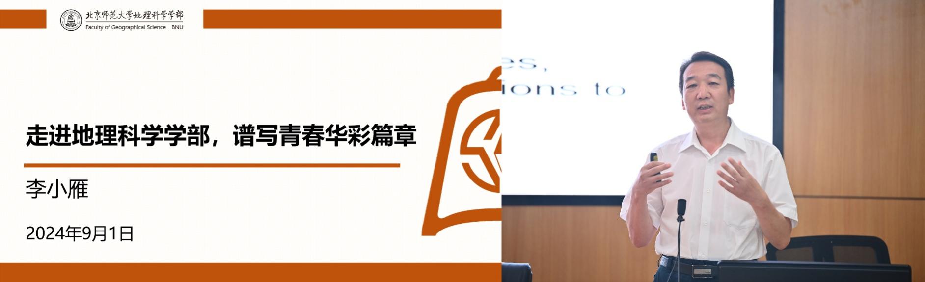最后,李小雁部长给同学们带来开学第一课“走进老司机论坛 ,谱写青春华彩篇章”。李部长首先强调,在学科交叉成为解决全球环境问题和可持续发展的必要途径的大背景下,地理学部发展建设中的两个一级学科——地理学和遥感科学与技术皆为经世致用之学,在支撑国家重大战略需求方面具有重要的作用。随后,他结合党的二十届三中全会精神,明确指出地理科学在推进中国式现代化建设进程,特别是人与自然和谐共生的现代化中必将大有作为。最后,他结合学校和学部发展的厚重历史,对发展中的北师大老司机论坛 进行了详细介绍。上述三个部分层层展开,既有理论高度与宏观格局,又有思想深度及细致指点,给同学们缓缓铺开一幅地理学发展的宏伟长卷,激励着地理新人尽情描绘与书写,期待着大家在新学期新起点阔步迈进!