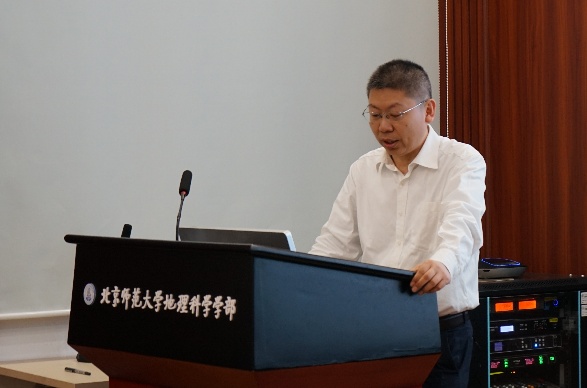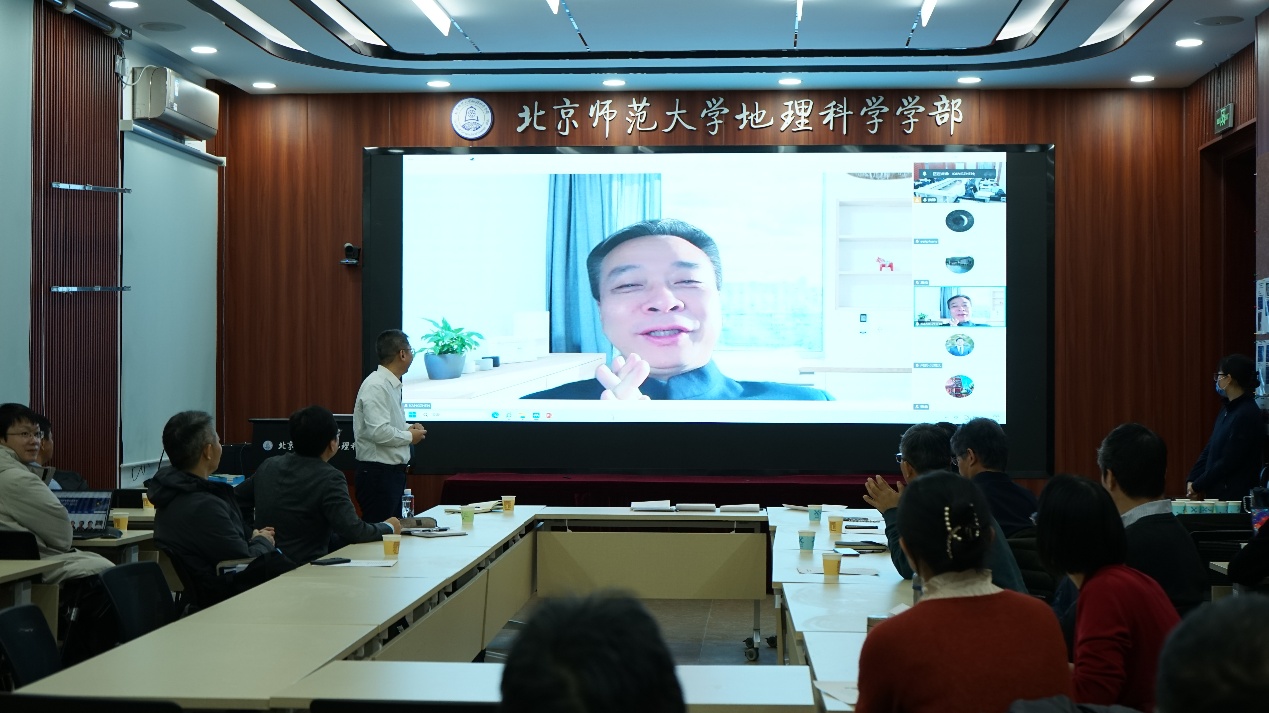 实验室主任胡斯勒图、副主任阎广建介绍实验室重组方案和北师大分部情况