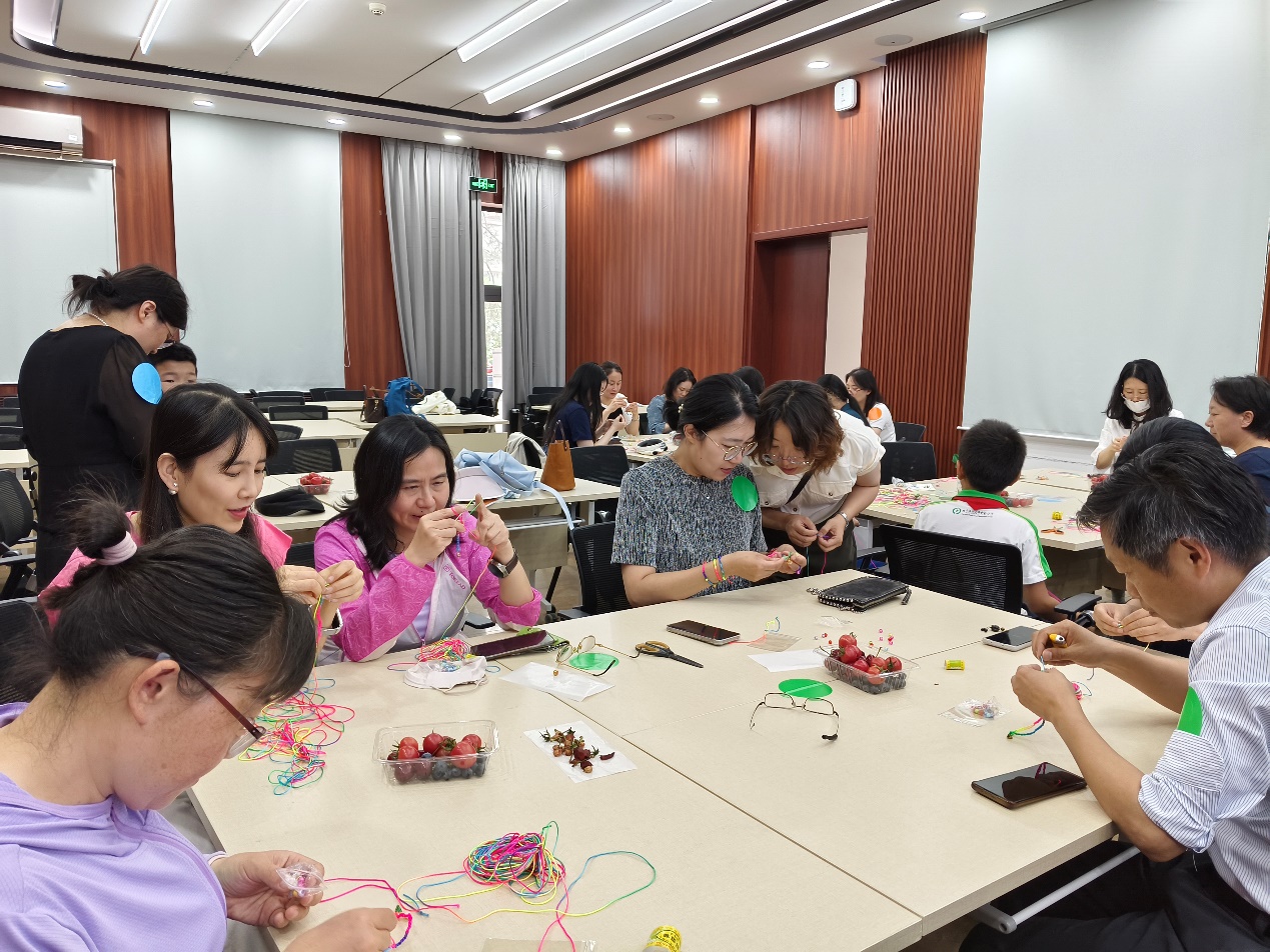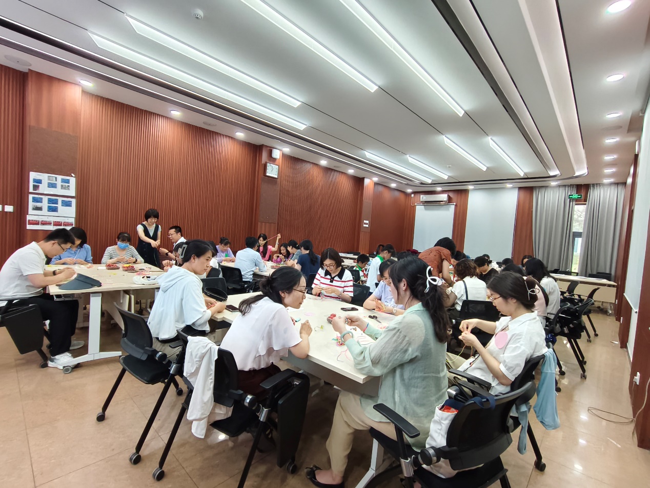 本次活动内容丰富、形式多样,包含签到、随机分组、端午文化和习俗介绍、手工制作体验学部工会兴趣小组介绍以及欢乐合影等环节。最受欢迎的五彩绳编环节,老师们围坐成组,互帮互助,从最初生疏笨拙逐渐得心应手,专完成了属于自己的节日小礼物。现场笑语盈盈交流热烈,处处洋溢着节日的喜悦与温情