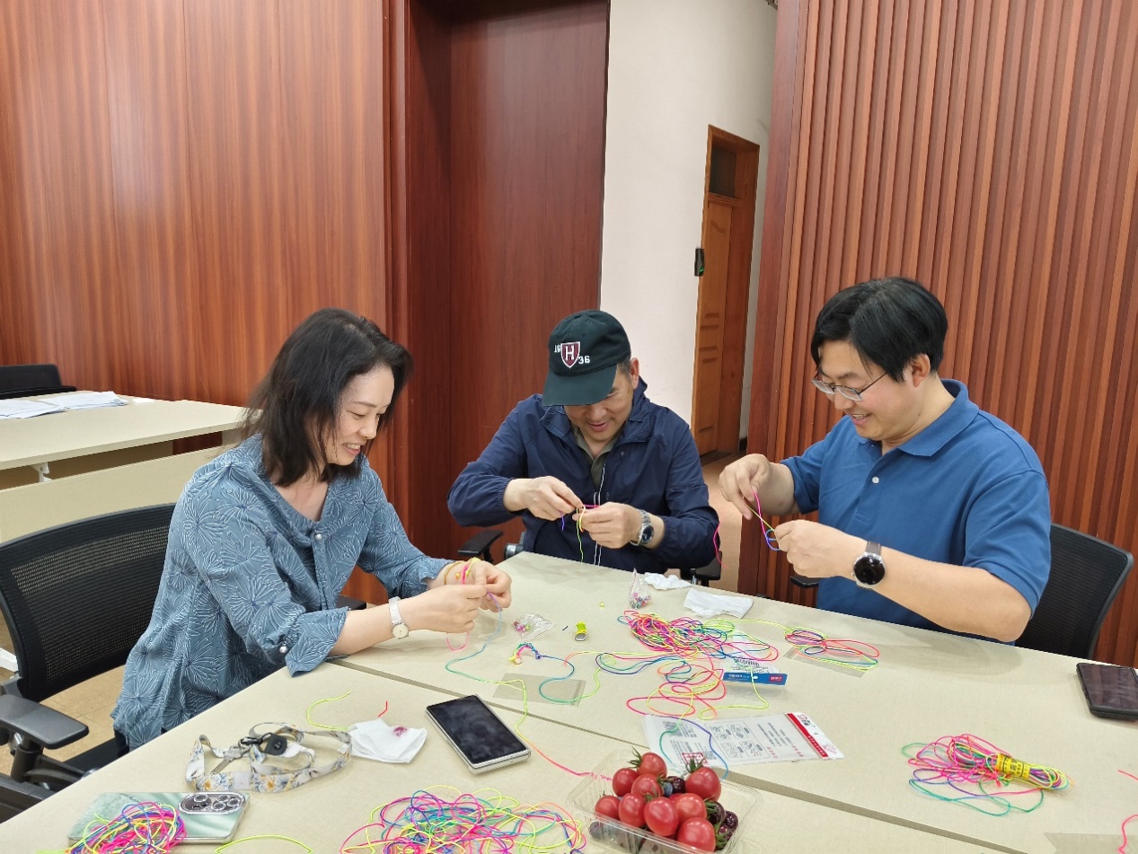 为弘扬和传承中华优秀传统文化,端午节,丰富教师工会会员文化生活,增进教师之间的交流联系,老司机论坛 工会于2025530中午在生地楼180会议室成功举办了“手编五彩绳,慢叙端午情”主题活动本次活动吸引了来自学部各工会小组60位会员老师踊跃参与大家欢聚一堂,在温馨的节日氛围中,共同感受端午文化的魅力,分享传统习俗,亲手象征平安吉祥的五彩畅叙浓浓同事情谊。