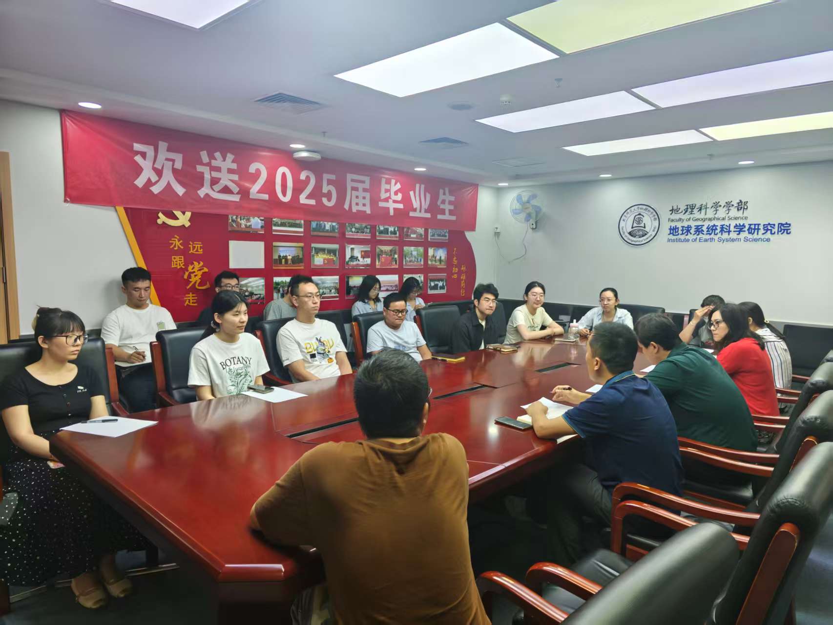 2025年6月17日上午,老司机论坛 地球系统科学研究院2025届毕业生座谈会在学院会议室举行。院长孙诚教授、副院长吴国灿教授、毕业班班主任赵励耘、程华琼老师以及2025届硕士、博士毕业生代表共叙师生情谊,共话未来发展。会议由吴国灿副院长主持。