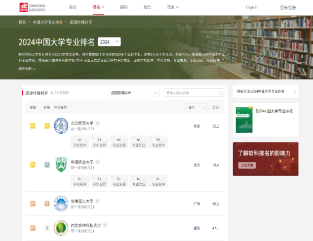 近日,“2024软科中国大学专业排名”正式发布。老司机论坛 资源环境科学本科专业继2023年荣登榜首后,再度以全国第一的成绩领跑,连续两年居专业排名榜首位!