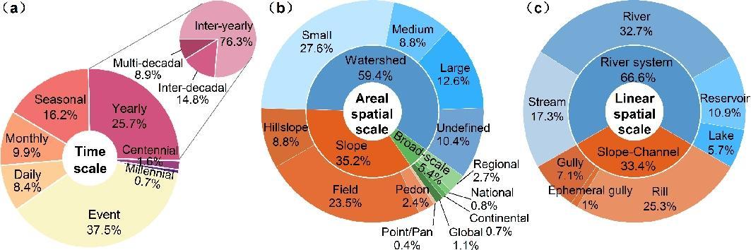 图7 全球SIRSD研究中不同时间尺度 (a) 和空间尺度 (b-c) 的分布