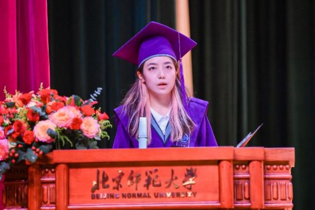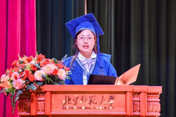 在毕业生代表发言环节,2021级本科生李妍漳同学,2022级硕士研究生吕湘同学,2021级博士研究生吕童同学分别总结了自己在北师大的经历和感受,表达了对学部、老师的感谢和对同学们的祝福。