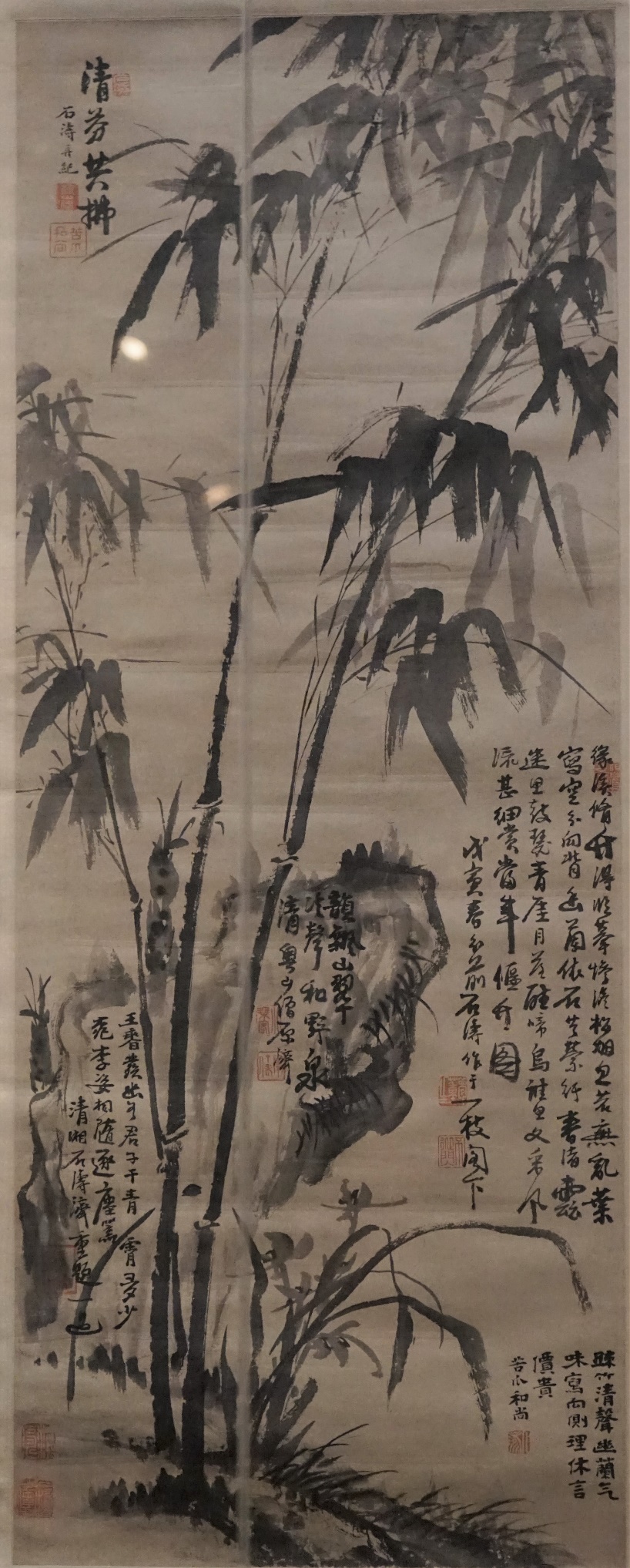 最后是“墨韵文脉”主题。该展览以最具中国艺术特质的写意为核心理念,将中国明清之际和现代以来的美术史上写意精神和写意水准的艺术作品齐聚一堂。展出作品在创作时间上分为古代和现代两部分。旨在从更宽广的历史、文化、艺术的视野,呈现中国艺术家对传统进行创造性转化和创新性发展所达到的高度、广度与深度。