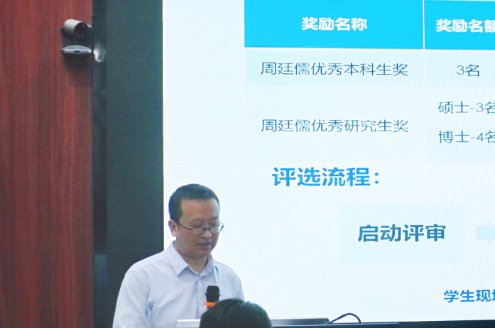 接着,何春阳教授向与会来宾介绍了“周廷儒奖学金”的具体情况。奖学金自设立以来,资助和奖励了一大批科研能力突出、积极热心于社会服务活动的优秀学生,继承和发扬着周廷儒院士优秀的科学精神。希望奖学金能够激励更多青年学子认真学习、刻苦钻研,为地理科学事业做出贡献。