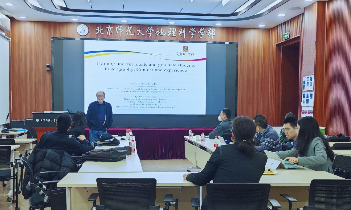 首先,Mark Rosenberg教授介绍了女王大学地理学教学与人才培养的方式和特色。他结合课程设置、教学模式、评价方法等方面,讨论了在教学中如何平衡理论基础与学科前沿、如何兼顾本专业与非本专业学生、如何选择教学案例等内容。他还以个人授课经验为例,介绍了健康地理学课程的教学设计。