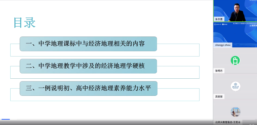 朱华晟教授的讲座主要集中在三个关键方面:中学地理课标中的经济地理相关内容,中学地理教学中的经济地理学硬核知识以及一例说明初、高中经济地理素养能力水平。
