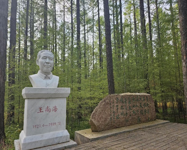 追随习近平总书记的足迹,来到了尚海纪念林和月亮山。尚海纪念林是为了纪念塞罕坝机械林场首任党委书记王尚海,他于1964年春带领林场职工在马蹄坑(尚海纪念林所在地)展开了造林大会战,造林500余亩,成活率达95%以上,拉开了向荒原进军、营造百万亩绿色林海的序幕。植树造林,讲究“三分造,七分管”,在海拔1900米的月亮山上,护林员刘军、王娟夫妇驻守望海楼13年,日夜看护着这片林子。这片落叶松高大挺拔,树龄高达60余岁,林下还有忍冬、大叶小檗、山楂等多种灌木,这松针满地、景色优美的丰茂森林像是在诉说着当年的热血创业故事。