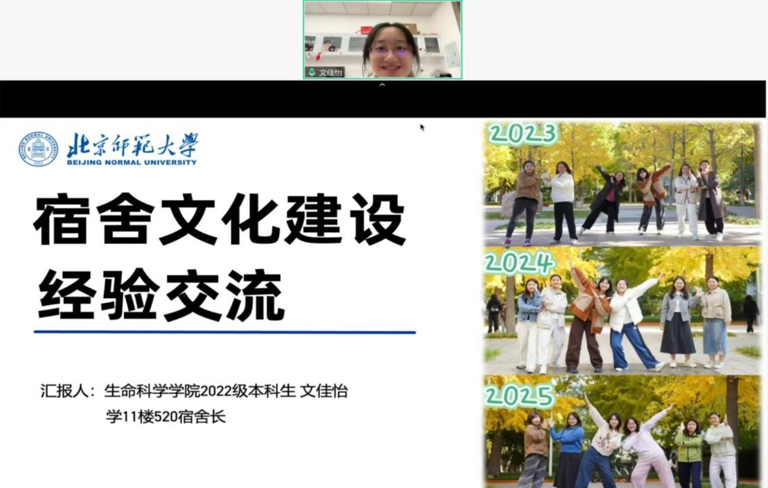 在经验分享环节,学部特别邀请了荣获“北京高校优秀学生基层组织”的宿舍舍长——人工智能学院的王淼同学和生命科学学院的文佳怡同学分别从不同角度分享了宿舍建设及评选文明宿舍的经验。她们结合自身宿舍管理经历,从共同兴趣培养、集体活动组织、包容互助氛围营造等方面,生动展现了优秀宿舍的建设历程,为与会宿舍长提供了可复制、可借鉴的宝贵经验,引发热烈共鸣。
