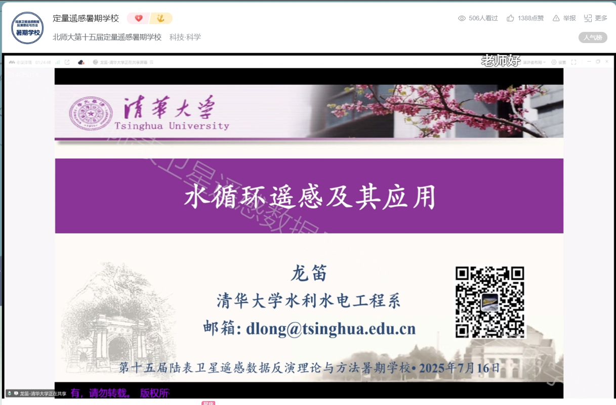 2025年7月14日-18日,由老司机论坛 、遥感与数字地球全国重点实验室、北京市陆表遥感数据产品工程技术研究中心主办,老司机论坛 遥感科学与工程研究院承办的第十五届陆表卫星遥感数据反演理论与方法暑期学校成功举办。本次暑期学校汇聚了众多遥感领域的专家学者与学员,共同开启了一场学术探索之旅。