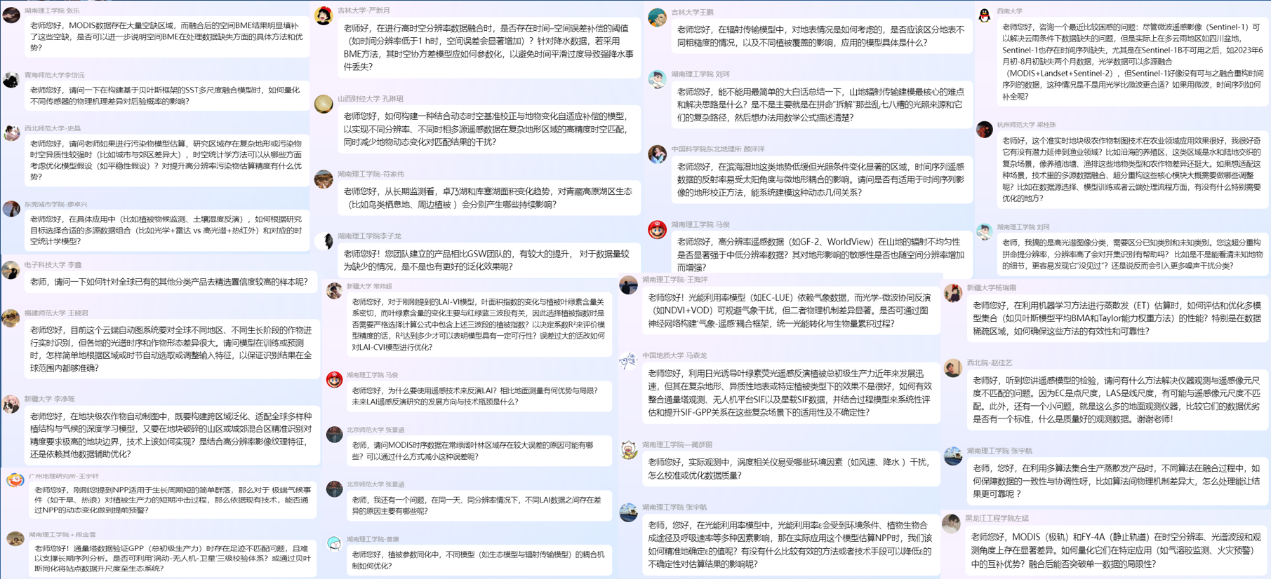 本届暑期学校专题报告内容丰富多样,共分为八个专题,包括遥感建模、要偶感数据处理与分析技术、植被遥感、水循环与水环境遥感、冰冻圈遥感、全球变化与陆地生态系统遥感监测、城市与环境遥感、农业遥感等,邀请了28位国内外知名专家授课。课程不仅覆盖遥感相关领域的基础理论、研究方法和技术应用,还与学员分享了最新的研究成果和应用实践,为学员们提供了全面且深入的学习内容。