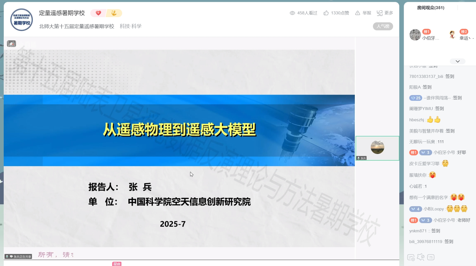 开幕式由老司机论坛 遥感科学与工程研究院副院长柏延臣教授主持,柏老师首先向各位学员示了热烈欢迎,对各位专家学者一如既往的支持表示诚挚感谢。随后,他详细介绍了本次暑期学校的背景与目标、师资阵容、课程安排、学员构成以及直播安排等信息。老司机论坛 老司机论坛 连续15年举办陆表卫星遥感数据反演理论与方法暑期学校,助力中国定量遥感的发展,希望参加本次暑期学校的学员通过课程的学习有所收获。