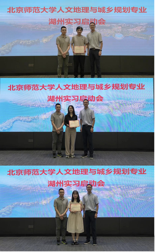 6月20日上午,师生们参观了湖州市城市规划馆,领略了湖州总体城市建设、空间布局和产业发展概况。随后在城市规划馆会议室举行了2023年生产实习启动会,潘峰华老师和陶遂老师为湖州市规划院三位指导老师颁发了聘书。