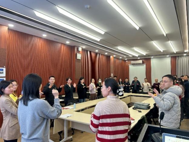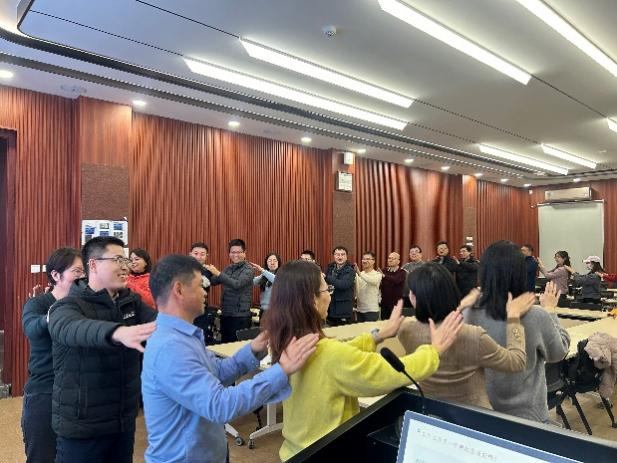 教师自我关怀是帮助学生的前提。李博浩老师借助“雨中的向日葵”互动活动,请老师们围成一圈,在互动游戏中一起放松,一起分享学期感悟。
