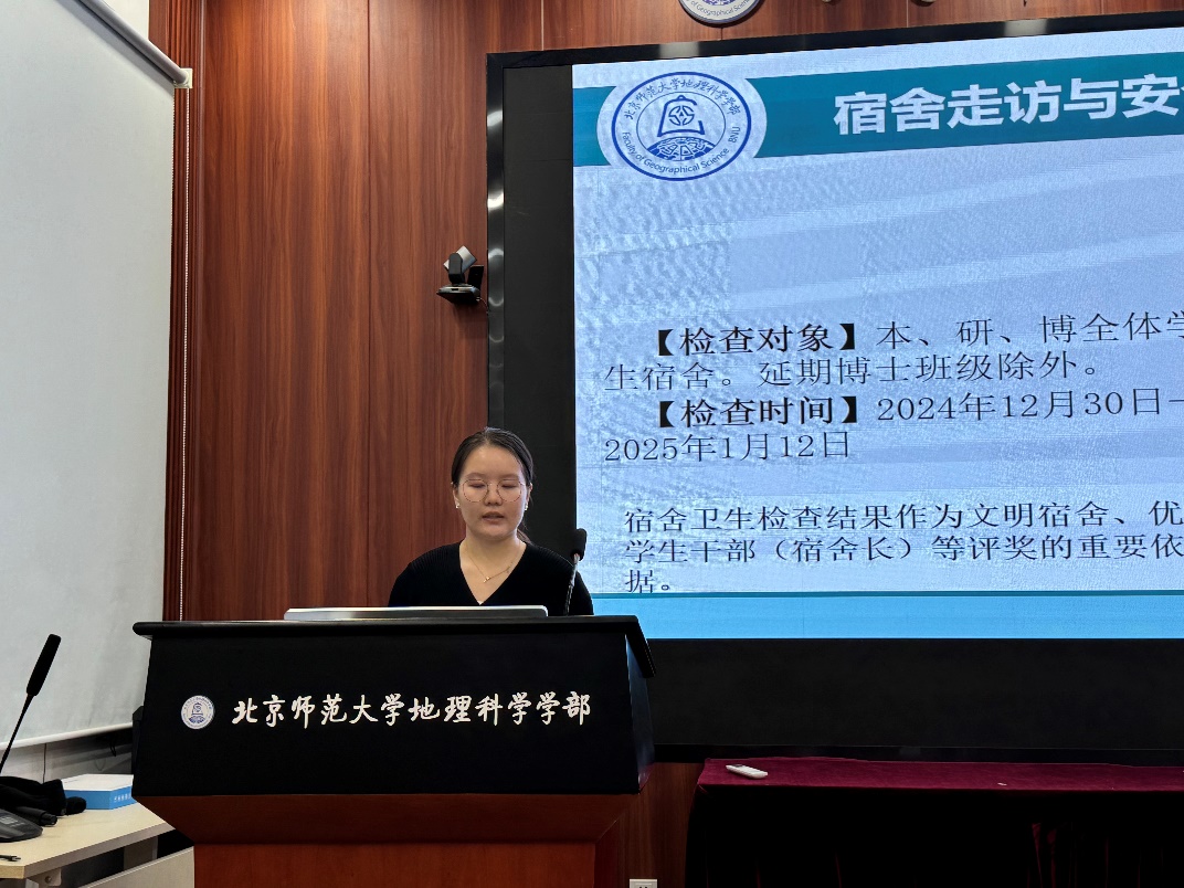 会议最后一部分,由余淅老师对学期末和寒假的班级与班主任工作安排进行了梳理,包括宿舍走访与安全卫生检查、学期末主题班会和学部新年慰问工作,强调了各项工作的具体要求。