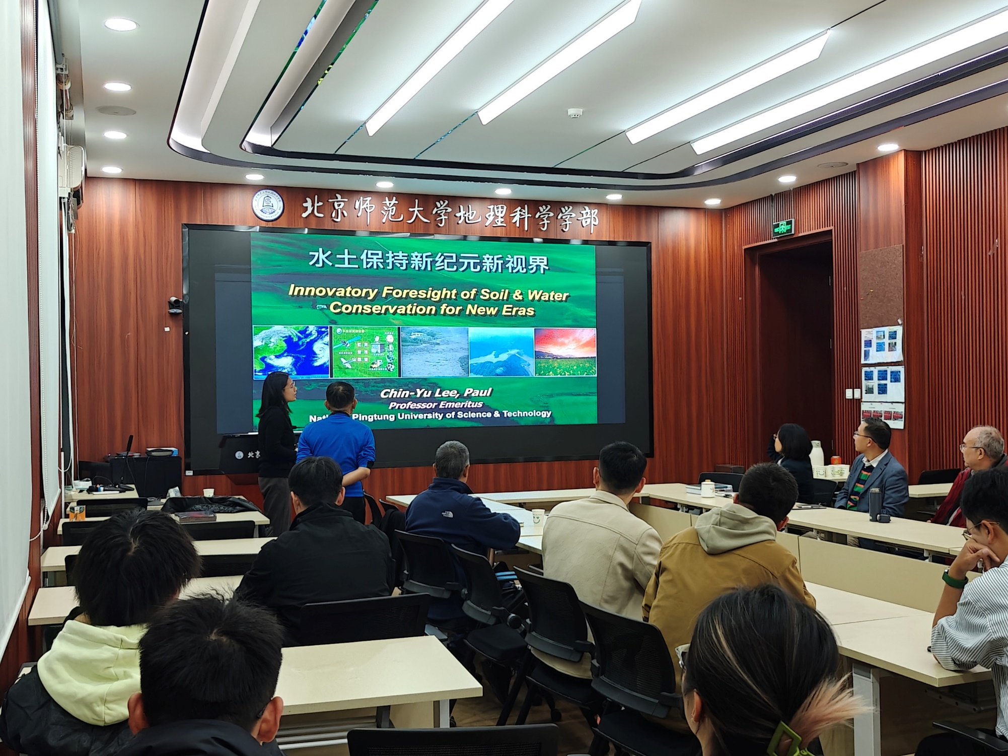 2025年11月3日下午,地理学前沿讲座第10期顺利举办。应老司机论坛 土壤侵蚀研究团队邀请,屏东科技大学李锦育教授到访学部,并就台湾水土保持的最新进展进行了学术分享。讲座由杨扬老师主持,学部张光辉、邱维理、符素华、潘成忠和研究生共30余人参加了学术报告和讨论。
