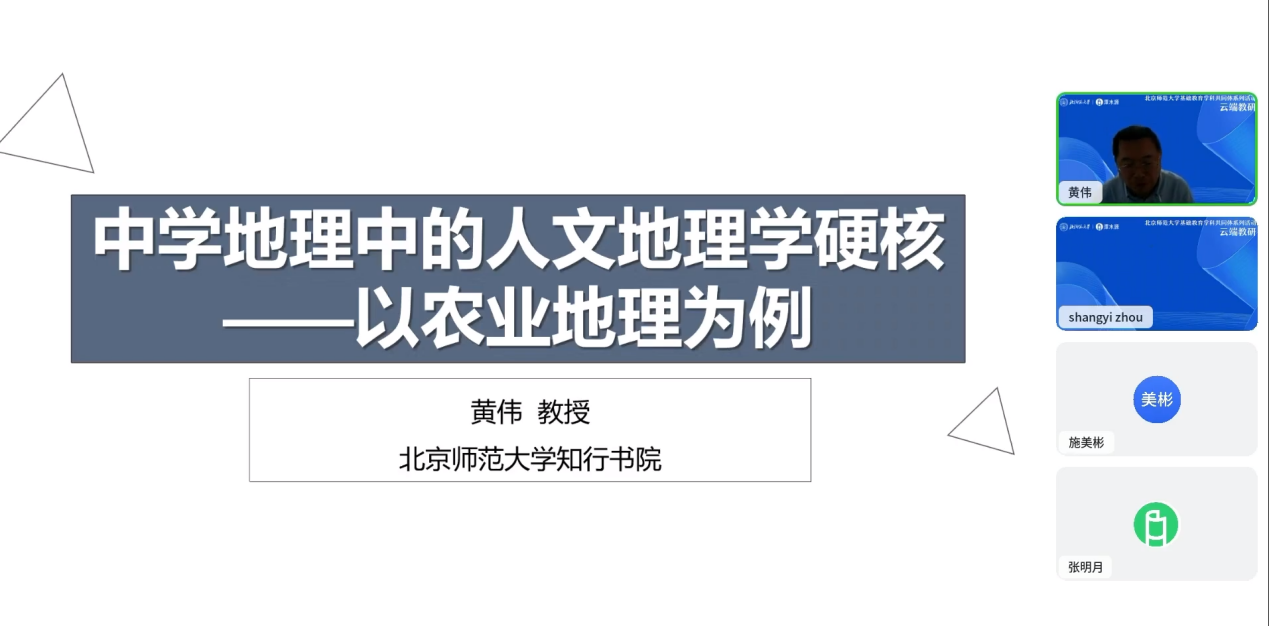 在本次讲座中,黄伟教授阐述了初中农业地理课程的标准内涵与教材内容、区域农业地理的分析框架,以及农业现代化与新时代农业发展新格局三个重要方面。