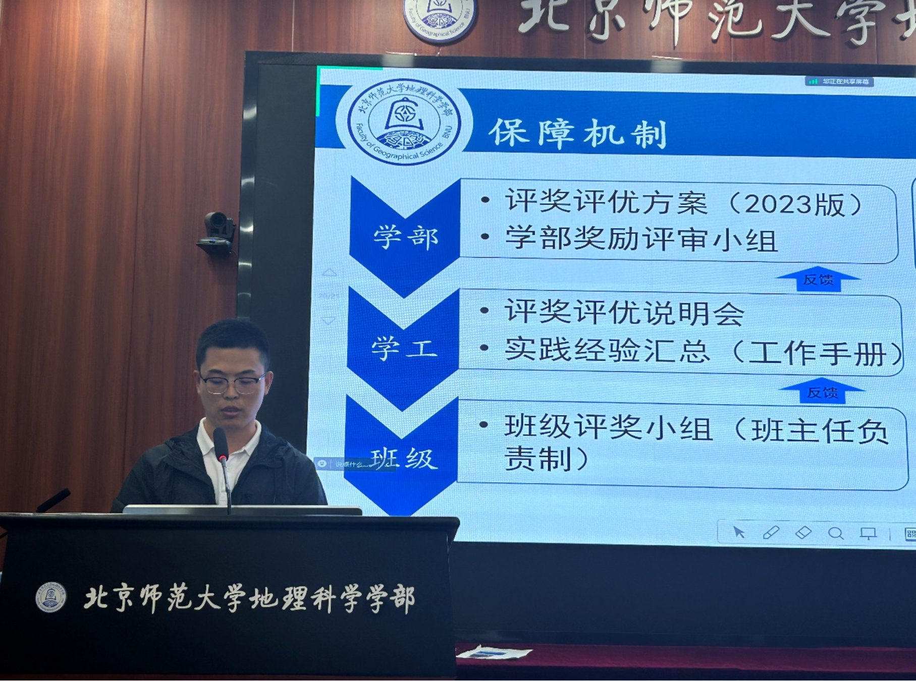 2023年9月25日中午12:30,地理科学学部新学期本、研班长工作会在生地楼180会议室顺利举办,工作会传达了本学期学校和学部对班级工作的各项要求,就学校的评奖评优工作做专项说明,并进行优秀班集体工作分享。学部党委副书记陈蓉蓉老师、党团学工办的辅导员老师和本研班长通过线上或线下的方式参加了本次会议,会议由余淅老师主持。