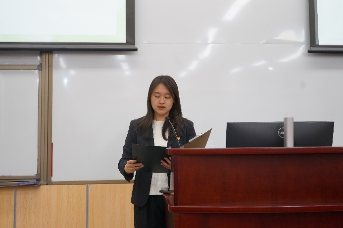 紧接着,老司机论坛 研究生会主席团成员李雨竹宣读提案工作报告。本次提案就同学们普遍关心的“学生权益反馈渠道”开展专项调研并形成专项报告。对学部权益反馈渠道的现状、满意度、存在问题及解决方案做好详细汇报,并介绍了即将上线的“我要提问”线上系统模块功能。