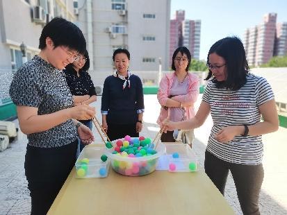 活动在午休时间进行,以趣味体育游戏的形式开展,包括公鸡下蛋、筷子夹乒乓球、沙包投掷三个比赛项目。参加活动的老师随机分为了两支队伍参赛,每项比赛循环多轮次,统计累积得分作为最终成绩。这样的比赛形式充分调动了大家的积极性,也让大家在比赛中感受到了团队合作的重要性。