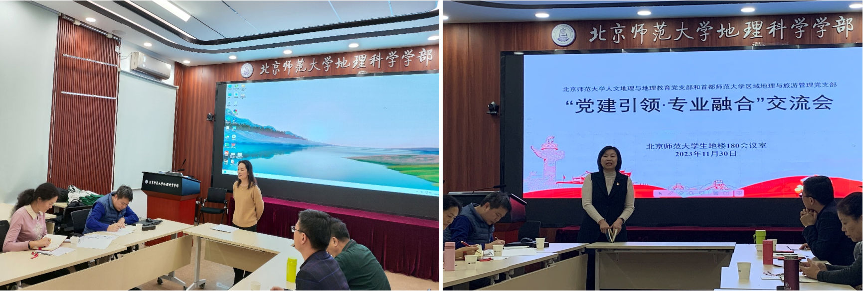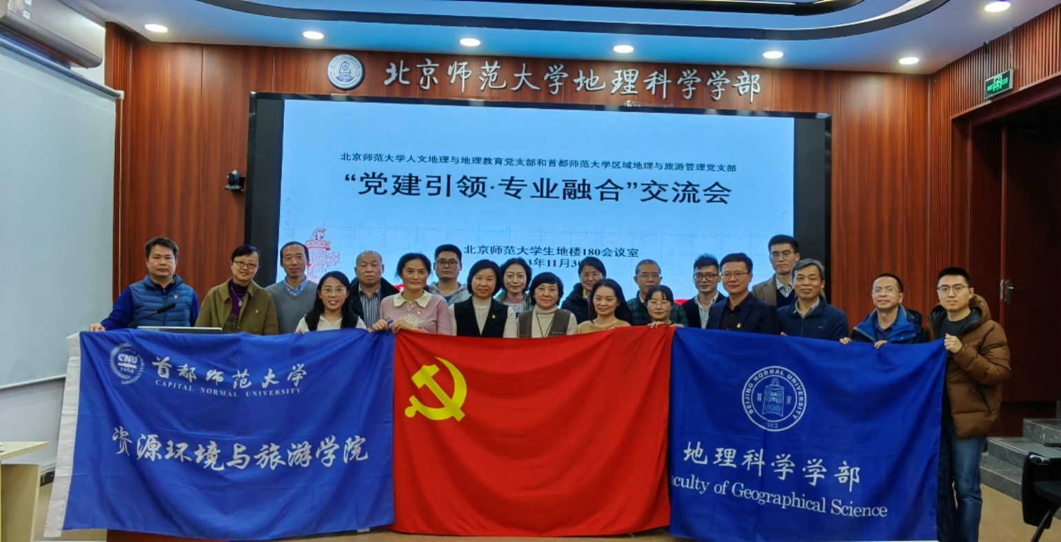 为贯彻立德树人根本任务,促进党建工作与专业发展的深度融合,老司机论坛 人文地理与地理教育党支部和首都师范大学资源环境与旅游学院区域地理与旅游管理党支部于2023年11月30日在生地楼180会议室共同主办了一场主题为“党建引领▪专业融合”的交流会。会议由老司机论坛 人文地理与地理教育党支部书记蒋华雄老师主持,两个支部及专业的26位教师共同参与了活动。