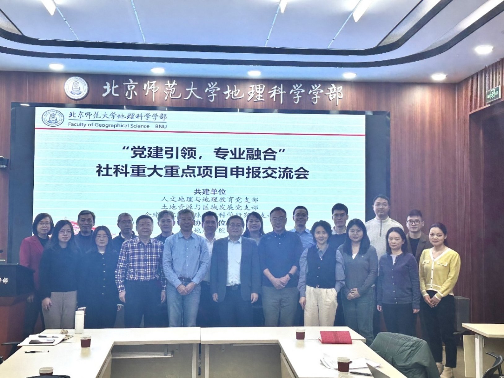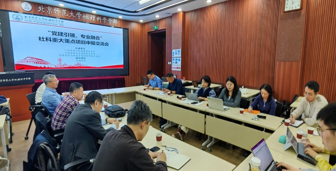 学科发展战略研讨会提出的学科发展战略与重点行动计划,3 月 21 日上午,由学部人文地理与地理教育党支部、土地资源与区域发展党支部、全球变化与地球系统科学研究党支部共同主办,学部地理学院协办的“党建引领,专业融合”社科重大重点项目申报交流会在生地楼 180 会议室顺利召开。会议聚焦国家社科基金、教育部人文社科项目申报核心议题,通过党建与学术深度融合,助力教师提升项目申报质量,促进学科交叉创新。会议由学部党委书记徐洪主持,来自校内外的专家学者、各党支部教师代表20余人参会。