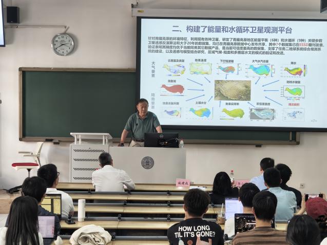 在全球变暖背景下,青藏高原水循环系统正经历显著变化:冰川加速消融、冻土退化、湖泊扩张,这些变化不仅重塑区域水文格局,更通过反馈机制对区域与全球气候产生深远影响。施建成研究员以“青藏高原水循环的卫星观测及模拟研究”为题,首先围绕“如何认识青藏高原能量与水循环系统的时空分布与变化特征”这一核心科学问题,系统阐述了青藏高原研究在气候变化与人类活动双重影响下面临的主要挑战。随后,施老师从卫星组网观测系统构建、高时空分辨率遥感数据集生产、过程模型与同化系统改进、能量与水循环要素时空变化分析四个方面,详细介绍了青藏科考专题“亚洲水塔地表水量平衡的时空分布、变化和成因”的研究进展。与国内外同类算法研究相对比,本专题发展的遥感反演算法在机理性、时空分辨率与数据精度方面具有显著优势。基于专题研究成果,施老师深入分析了青藏高原暖湿化、冰川融化原因与发展趋势等气候热点问题,揭示了高原水资源演变规律及旱涝灾害对气候变化的响应机制。