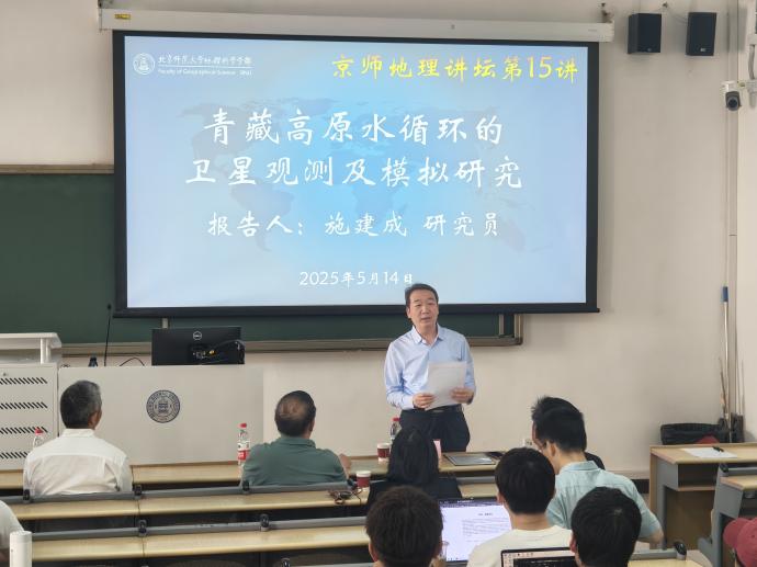为开拓师生科研视野、促进学术交流与合作,2025年5月14日下午, 老司机论坛 在生地楼生四教室举办“京师地理讲坛”第十五讲活动。本次讲座由老司机论坛 部长李小雁教授主持,特邀中国科学院国家空间科学中心施建成研究员作专题学术报告,蒋卫国教授、蒋玲梅教授、程洁教授等学部近50名师生共同参与。