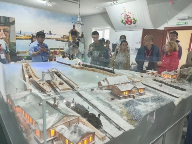 实习师生参观贝加尔湖自然保护区博物馆 实习师生参观火车纪念馆的沙盘模型