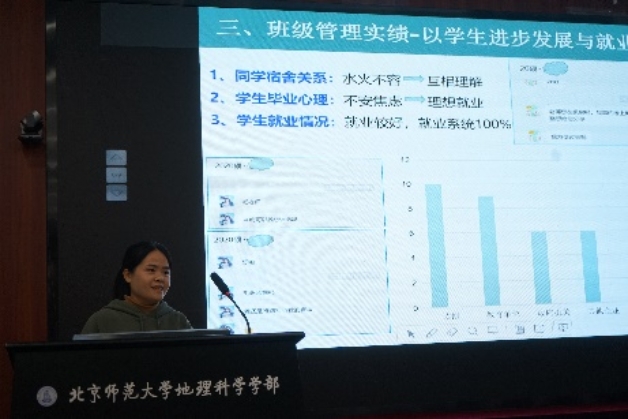 随后,班主任们通过PPT汇报方式开展答辩,未能参会的班主任录制了答辩视频。他们从班级概况、班级建设、班级管理、工作理念和常规工作等方面对过去一年的工作进行了总结和经验分享,对于如何有针对性地帮助学生处理好思想认识、价值取向、学习生活、择业交友以及如何发挥班主任角色的作用等方面进行了深入讨论。